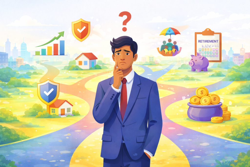 Why Insurance Is the Foundation of Every Financial Plan Insurance is not an investment or a tax tool. Learn why life and health insurance form the foundation of a secure financial plan and how to get it right. Most people think of insurance as something they have to buy.In reality, insurance is something you buy so your life plans don’t fall apart. Insurance is not about returns, tax savings, or paperwork.It’s about protecting everything you’re building — your income, your family, and your future. This article explains why insurance is the foundation of every strong financial plan and how to think about it the right way. Insurance Is Not a Tax Hack. It’s a Safety Net. Many people buy insurance only to save tax.That’s the wrong starting point. The real purpose of insurance is to protect your life from unexpected shocks — illness, accidents, or loss of income. Tax benefits are secondary.Protection comes first. One Medical Emergency Can Undo Years of Savings Healthcare costs are rising rapidly.Without health insurance, a single medical event can wipe out years of disciplined investing. Insurance ensures your savings stay invested instead of being used for emergencies. Life Insurance Protects People, Not Policies Life insurance is not about returns.It’s about continuity. If something happens to you, life should continue for your family — education plans, home EMIs, daily living. Insurance makes sure your absence doesn’t become a financial crisis. Insurance Gives You the Freedom to Take Smart Risks When your risks are covered, you can: Invest confidently Take career risks Plan long-term Insurance creates mental peace, which leads to better financial decisions. Underinsurance Is a Silent Risk Having insurance is not enough.Having enough insurance matters. Many people are underinsured — low cover amounts that don’t match today’s costs. A good plan reviews: Life cover adequacy Health cover limits Policy overlaps WELFIN INSIGHT “Insurance doesn’t make you rich. It makes sure a crisis doesn’t make you poor.” December 29, 2025 Why Insurance Is the Foundation of Every Financial Plan Read More December 29, 2025 Retirement Planning Mistakes Most Indians Make Read More December 29, 2025 Mutual Funds for Beginners: A Simple Guide to Start Investing Read More Confused about money decisions? Get clarity on investments, insurance & goals in one plan. Check Now Protect your life plan, not just your money. 👉 Book a Free Insurance Review with Welfin Get In Touch